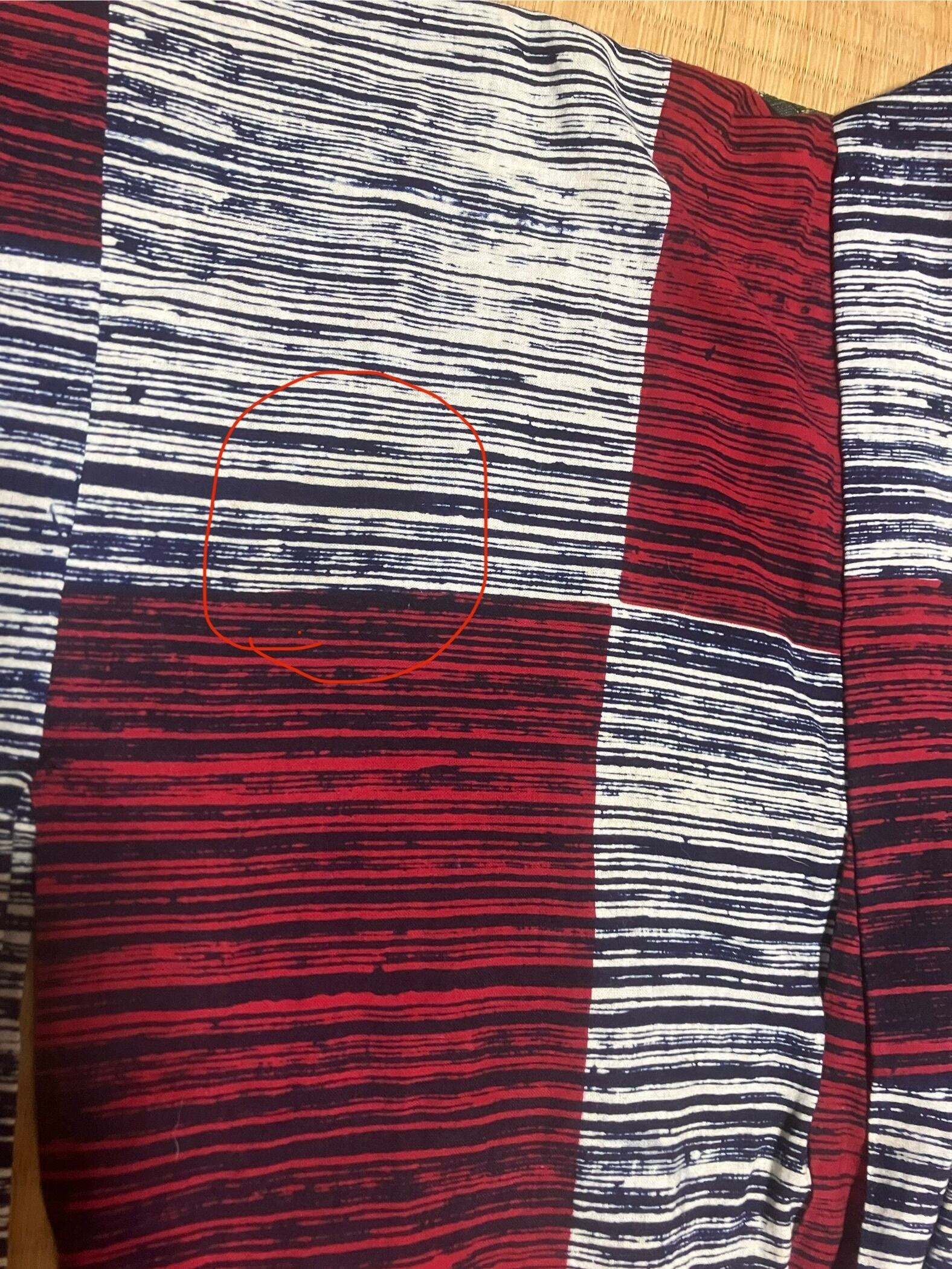 また、襟まわりの裏地付きの部分にも薄い汚れがあります。写真9枚目になります。