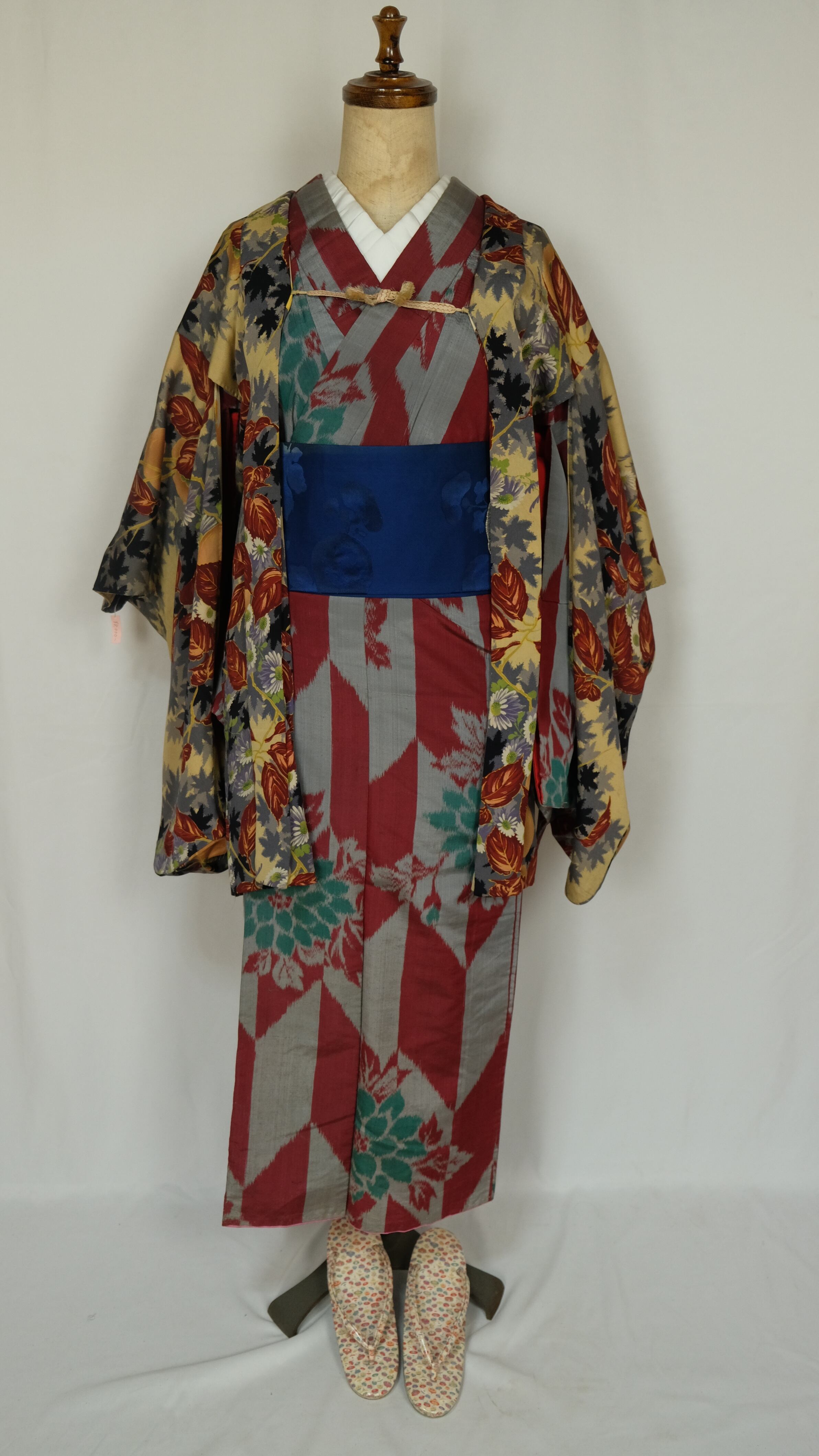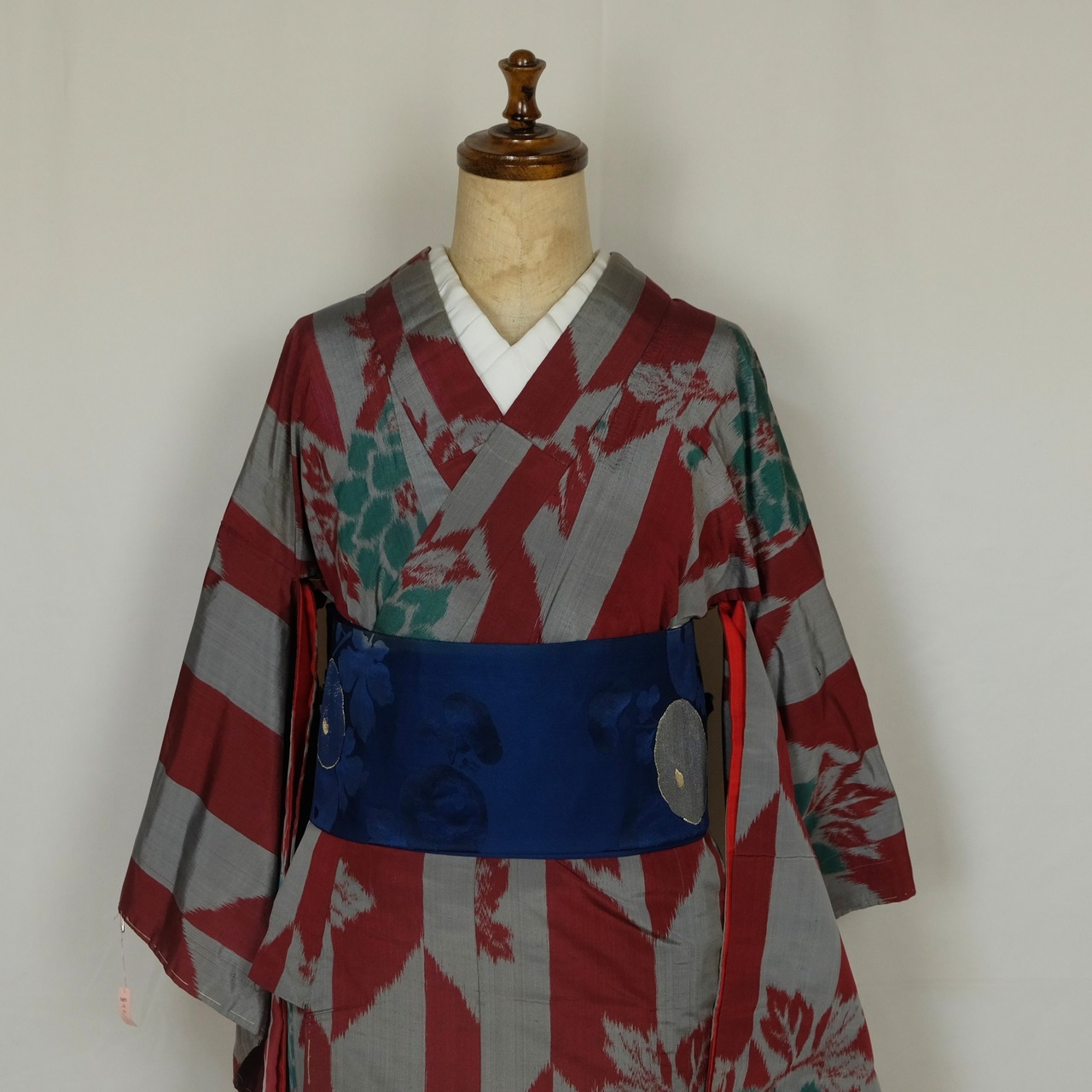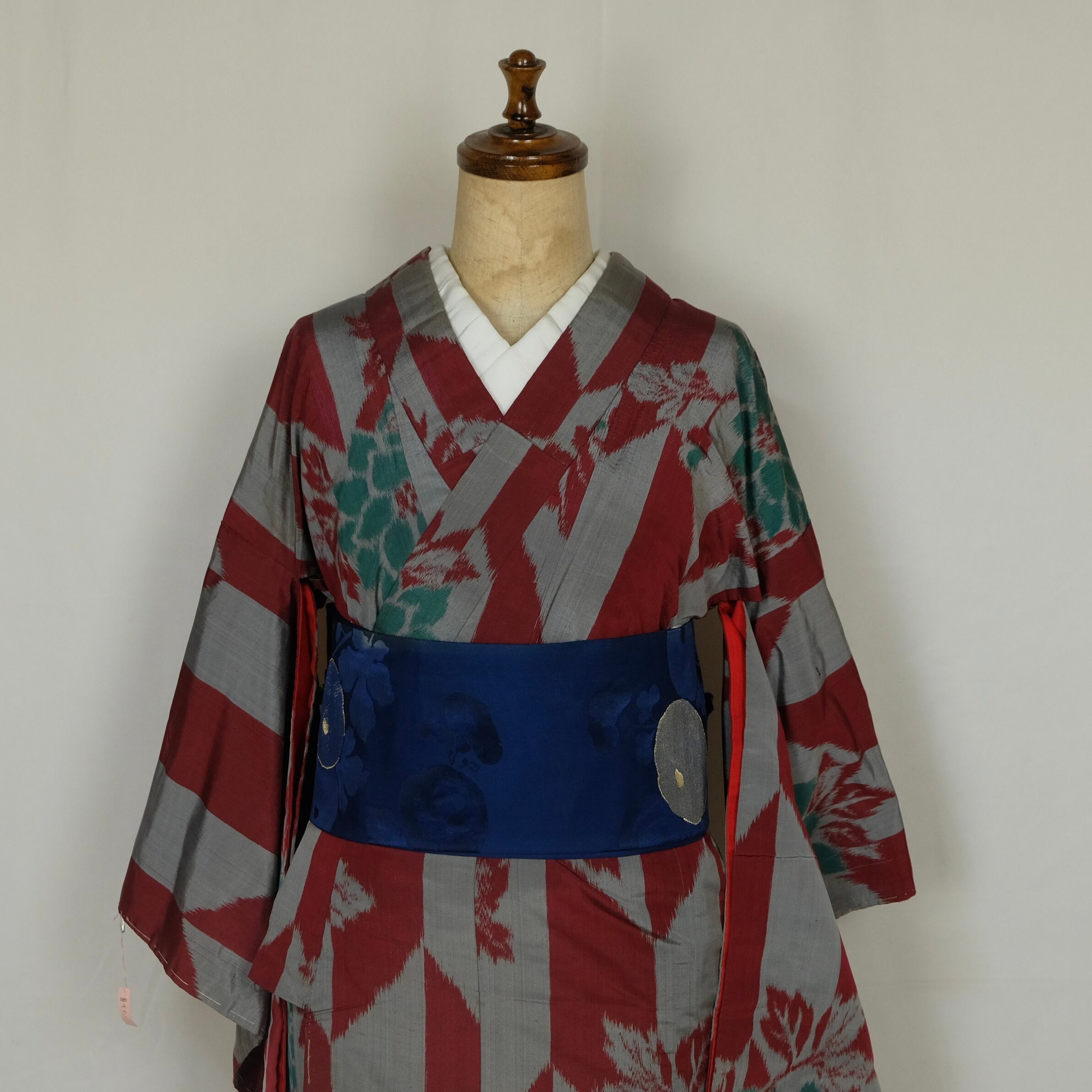 こちらは「銘仙(めいせん)」と呼ばれる、大正〜昭和初期に多く仕立てられた織物の着物で、