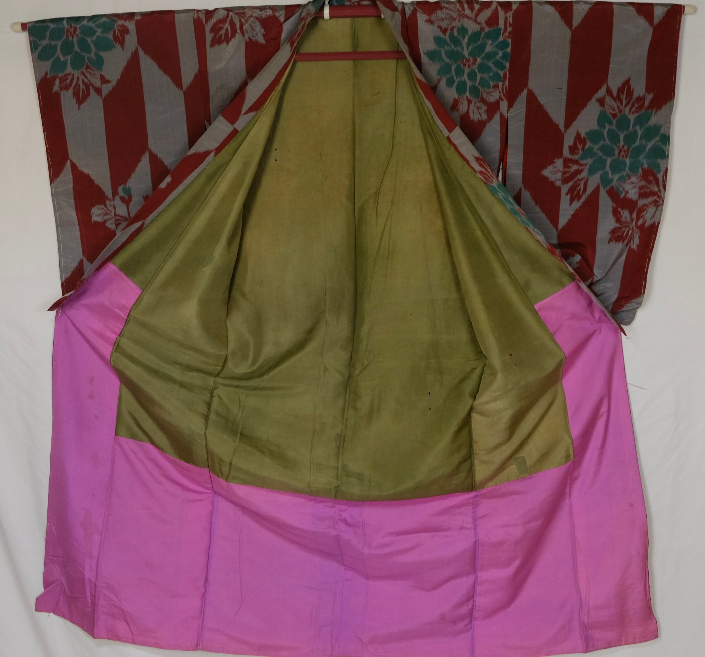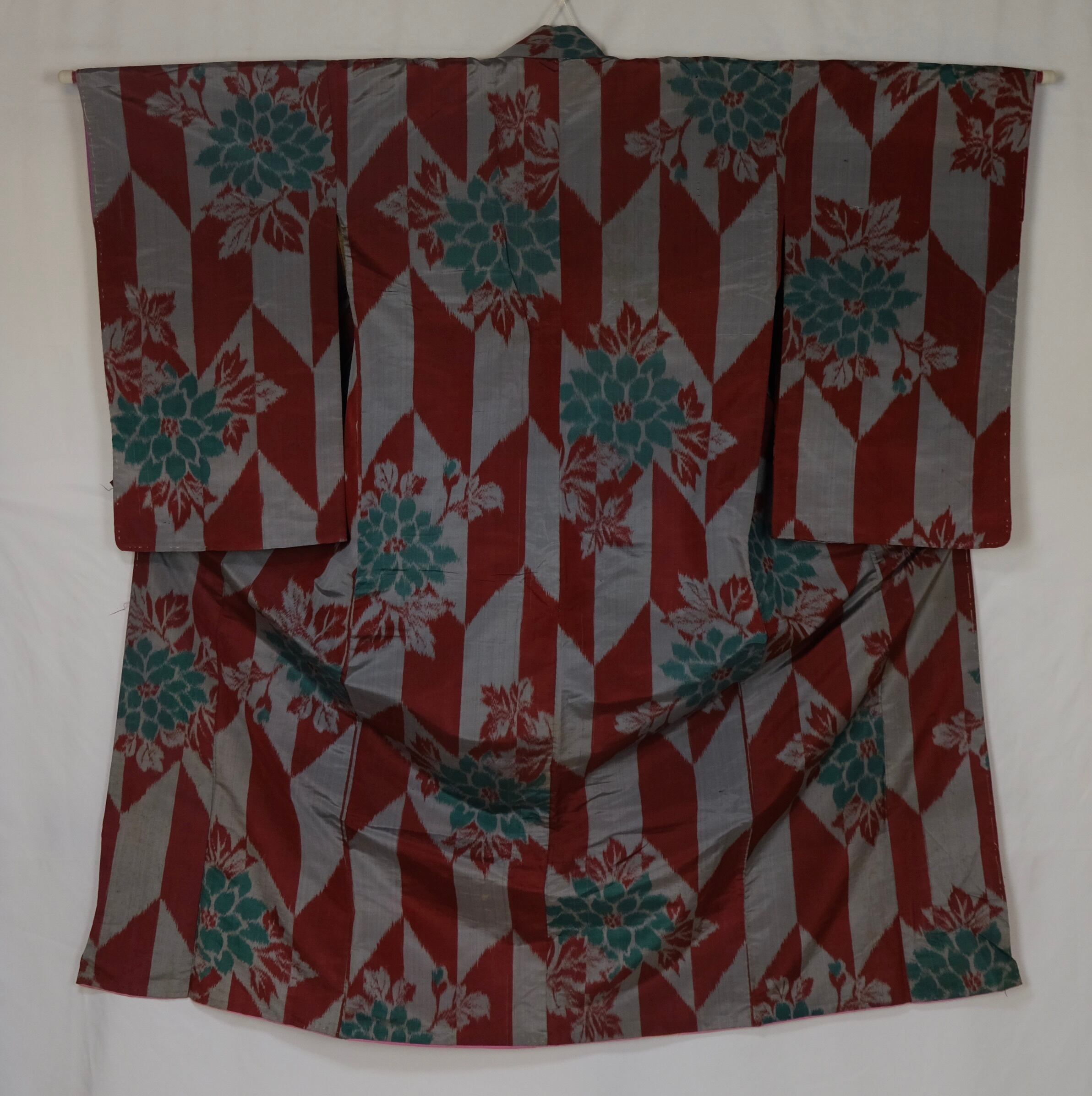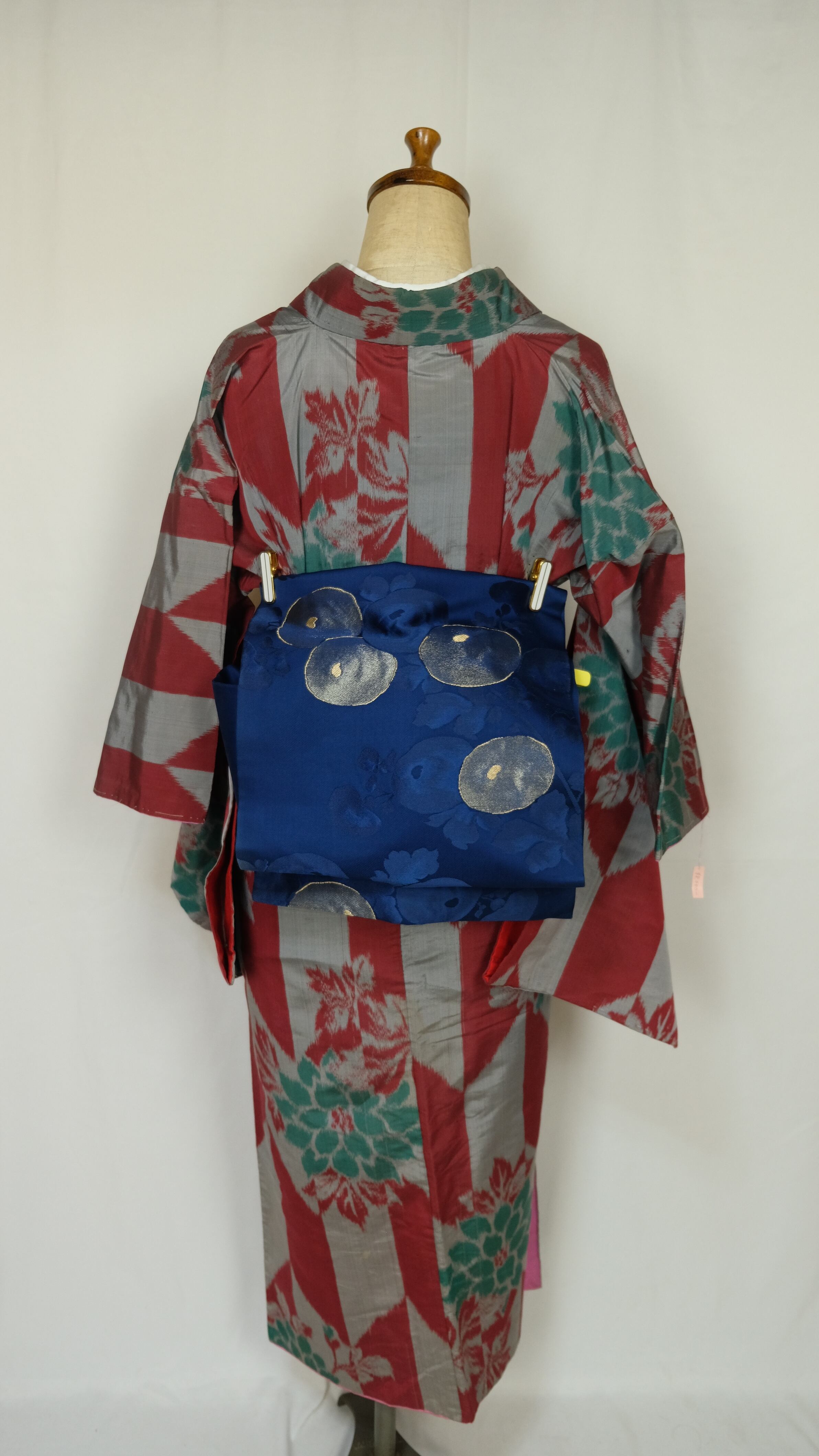 こちらは「銘仙(めいせん)」と呼ばれる、大正〜昭和初期に多く仕立てられた織物の着物で、