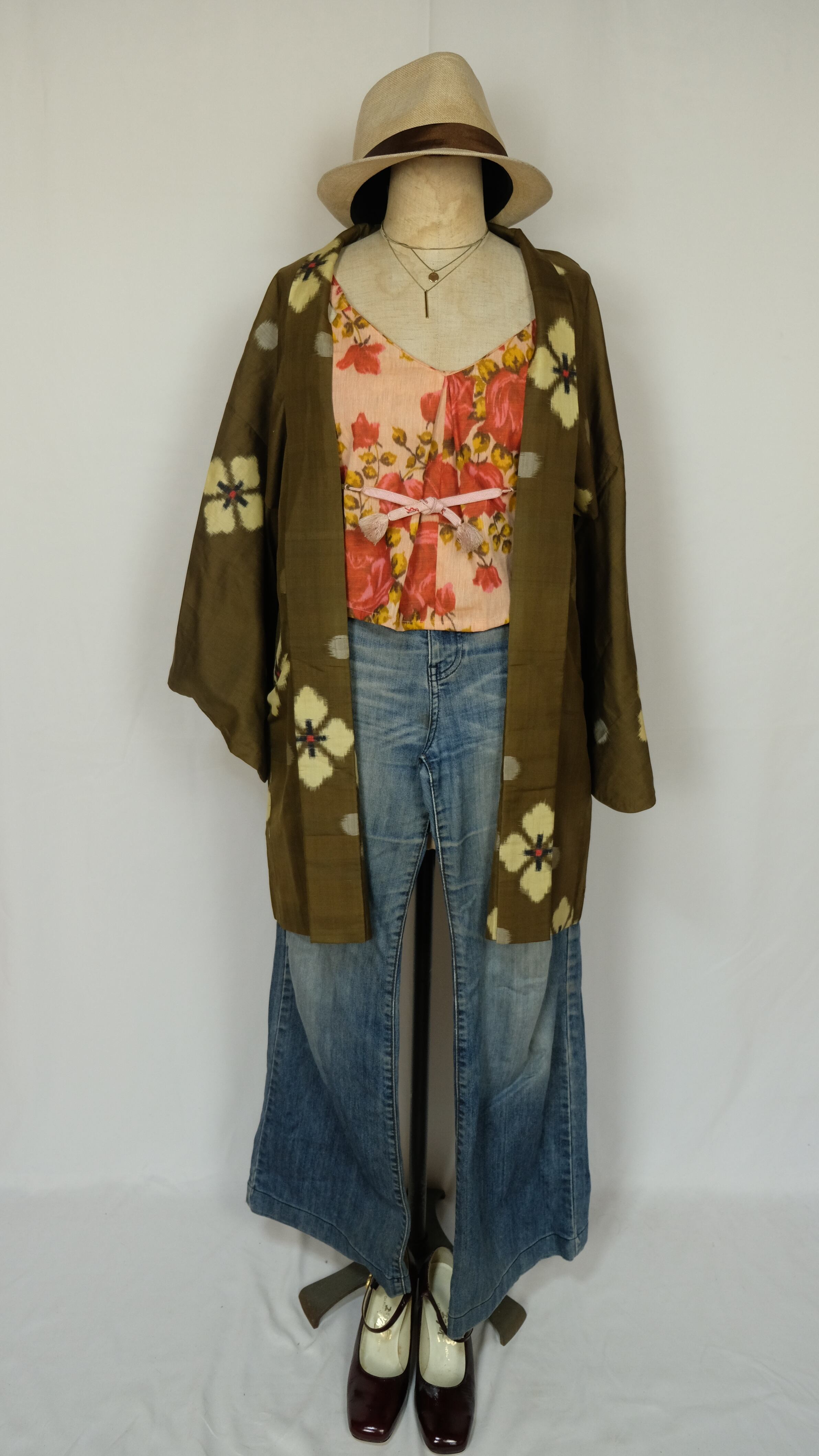 デニムなどのラフな洋装にも相性が良く、着物に限らず日常のスタイリングにも取り入れやすい羽織です。