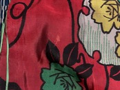 裏地は白部分は綿、八掛はライムグリーン系ですが素材は不明です。正絹ではありません。