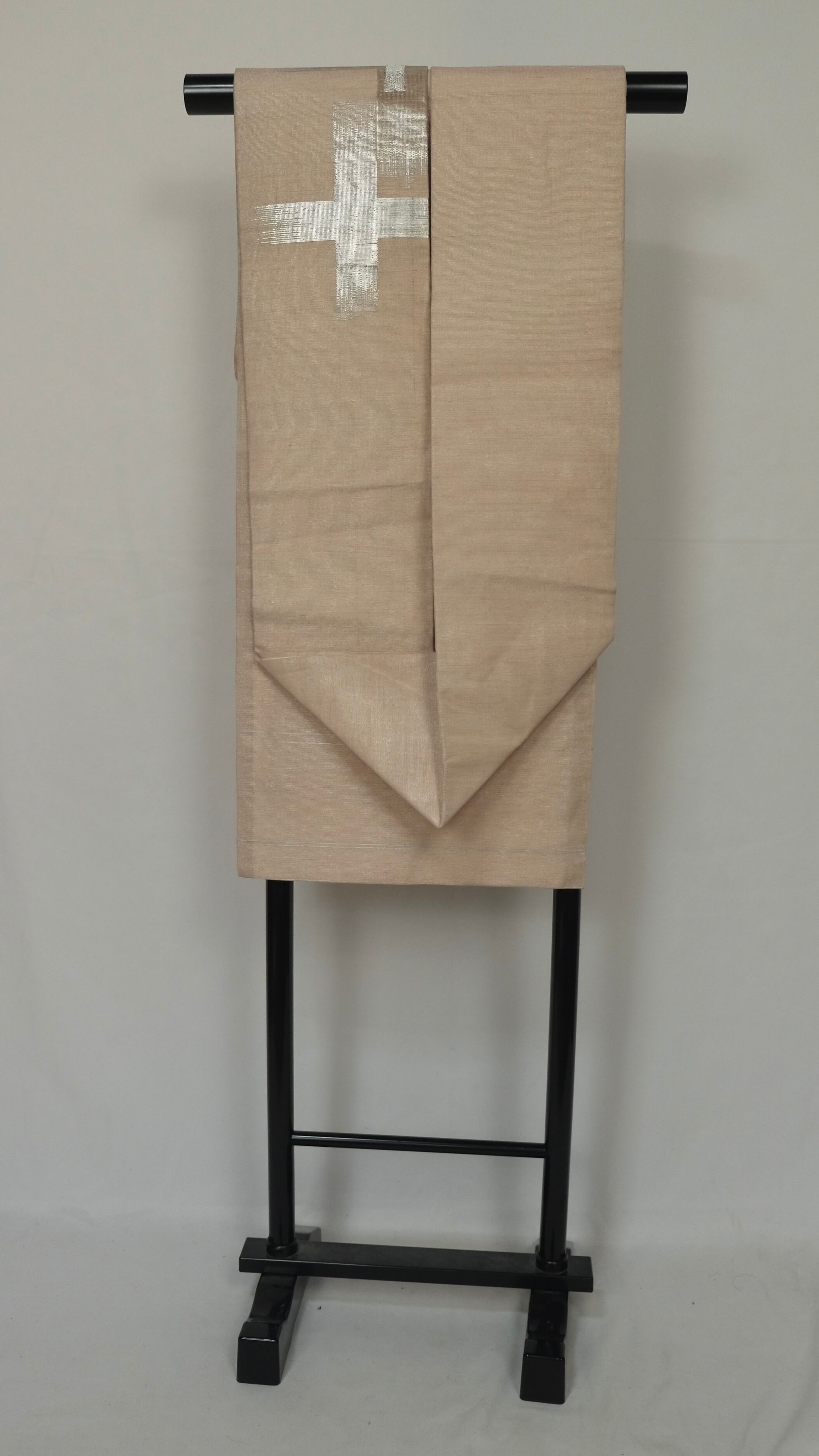 名古屋帯なので基本はカジュアル使いの帯ですが、銀糸の品のある輝きによって、カジュアルウェディングや、少しあらたまったセミフォーマルな場にも馴染みやすい雰囲気です。