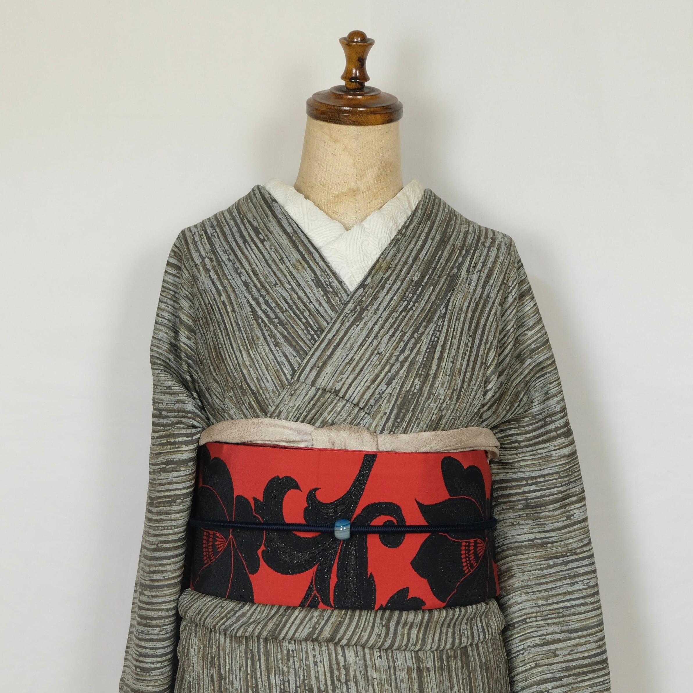 裏地(八掛)は深みのあるグレー系で統一されており、全体の渋さを引き締めています。
