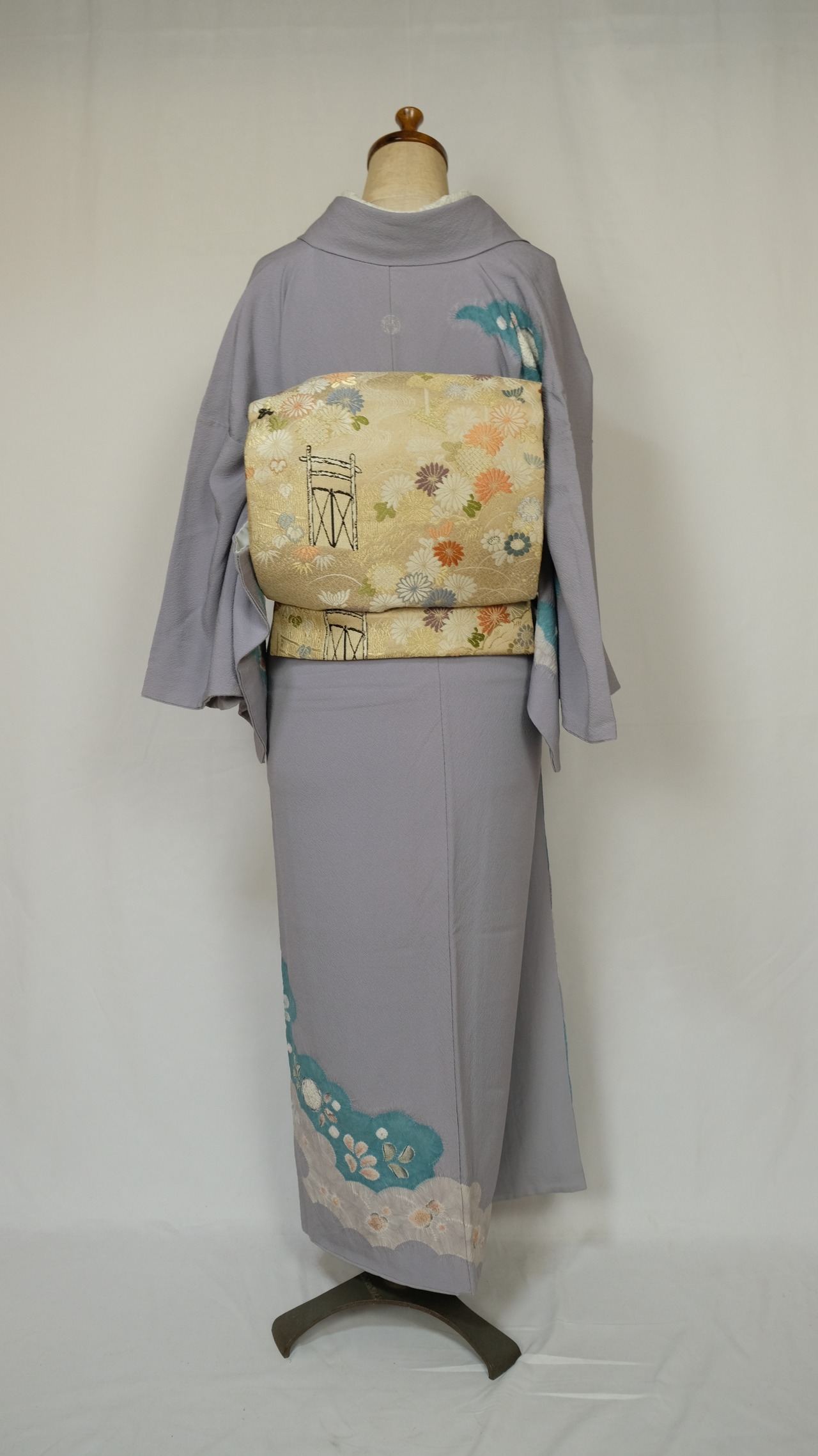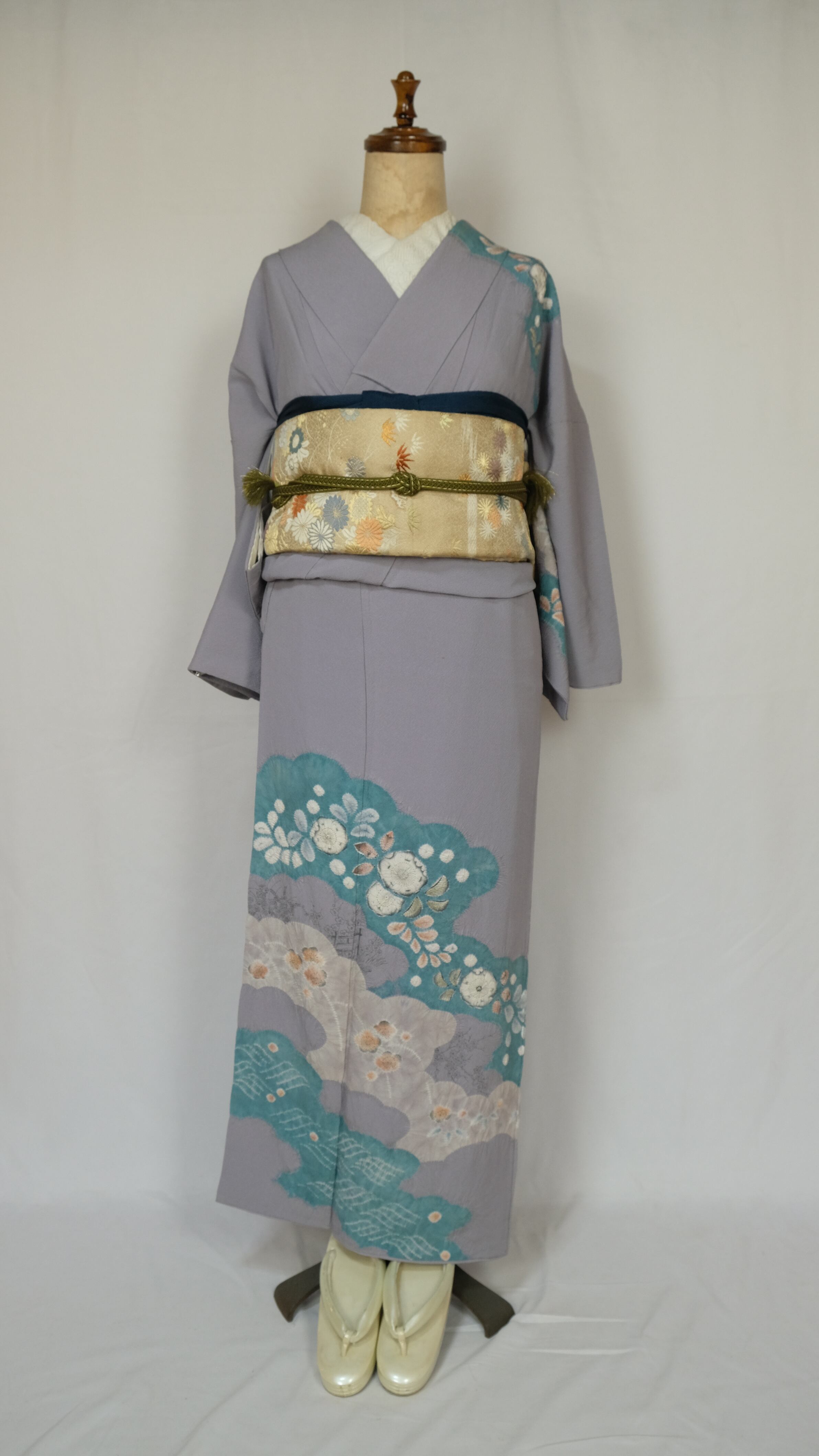 商品名:作家もの・一つ紋入り 紫がかったグレーの辻ヶ花模様訪問着|控えめな華やかさで長く楽しめる一枚