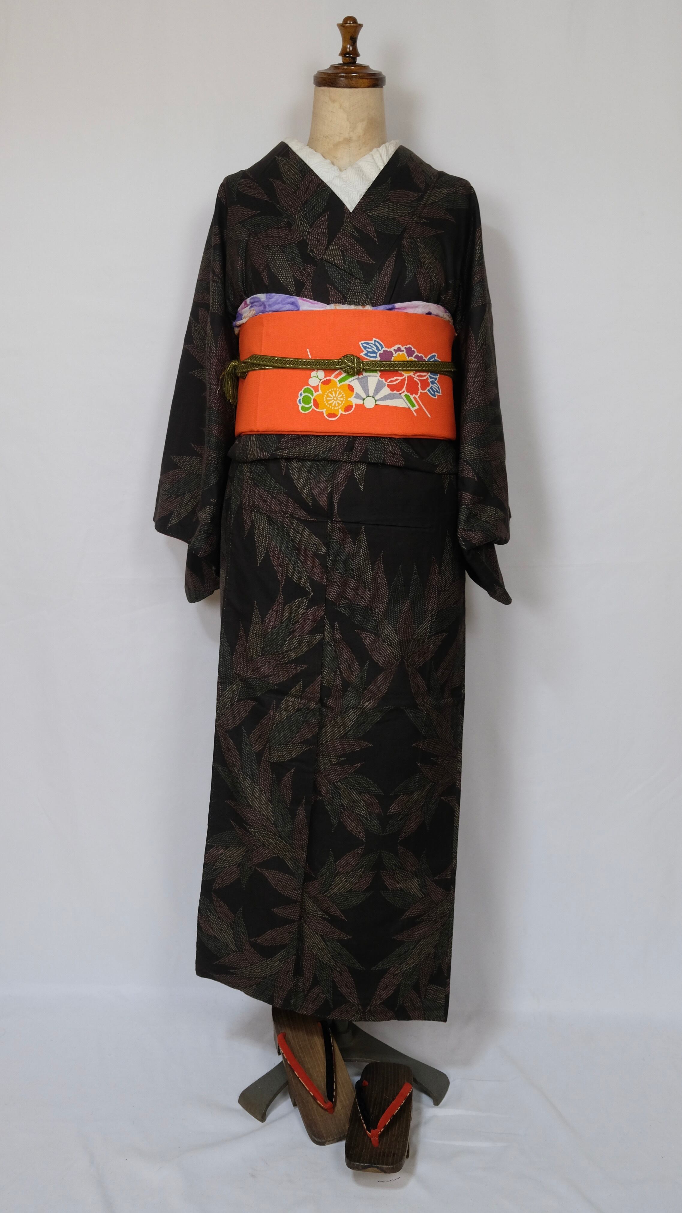 一方で、シックな帯を選べば大島紬らしい上品で落ち着いた装いにまとまります。