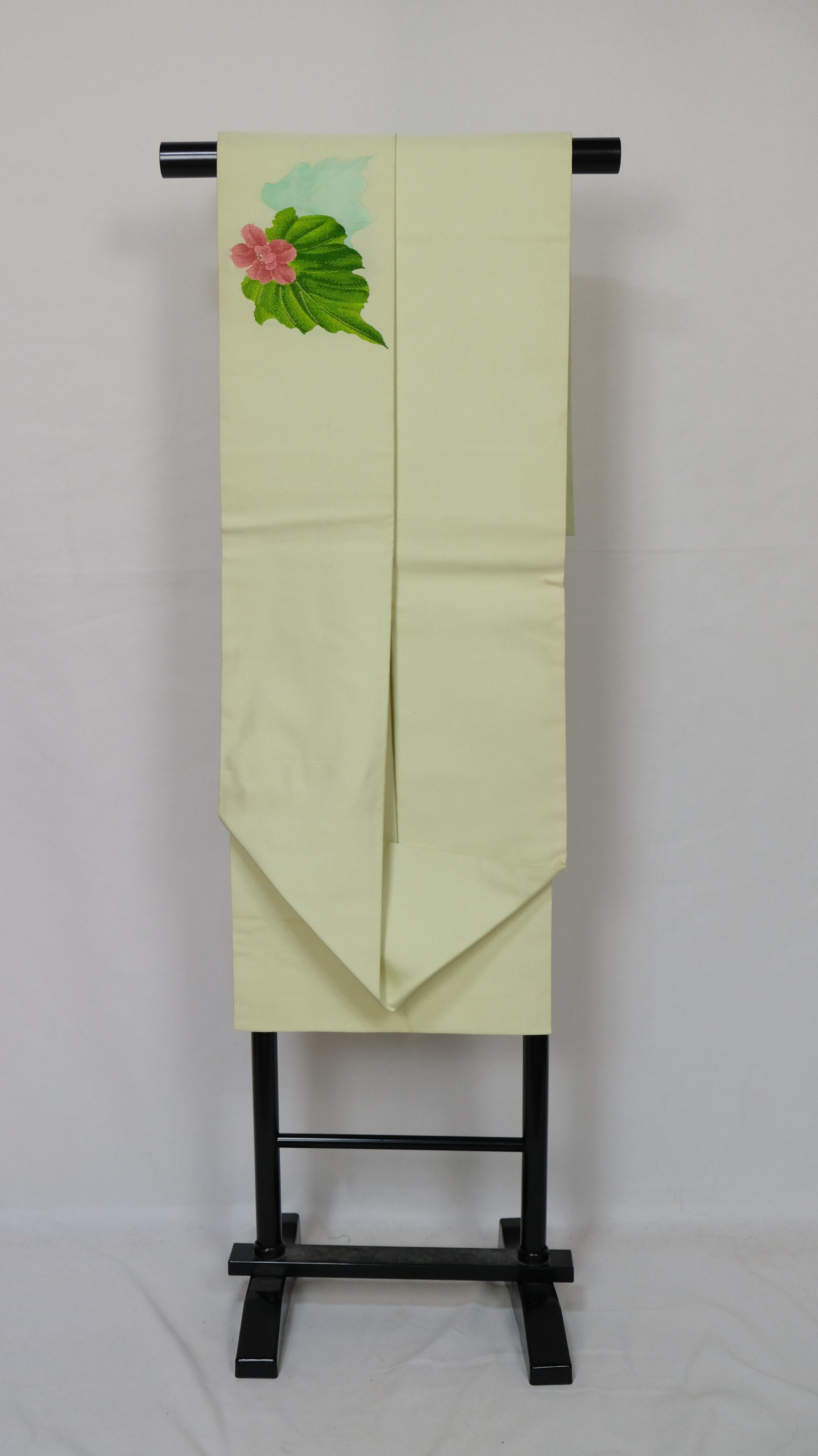 薄い黄緑色の地色に、大きなピンクと水色の花が描かれた木の枝柄が印象的な名古屋帯です。華やかで可憐なデザインが、着物コーディネートに春らしい彩りを添えてくれます。アンティーク風の魅力がある帯で、普段着物を華やかなコーデェネートにしたい方におすすめです。