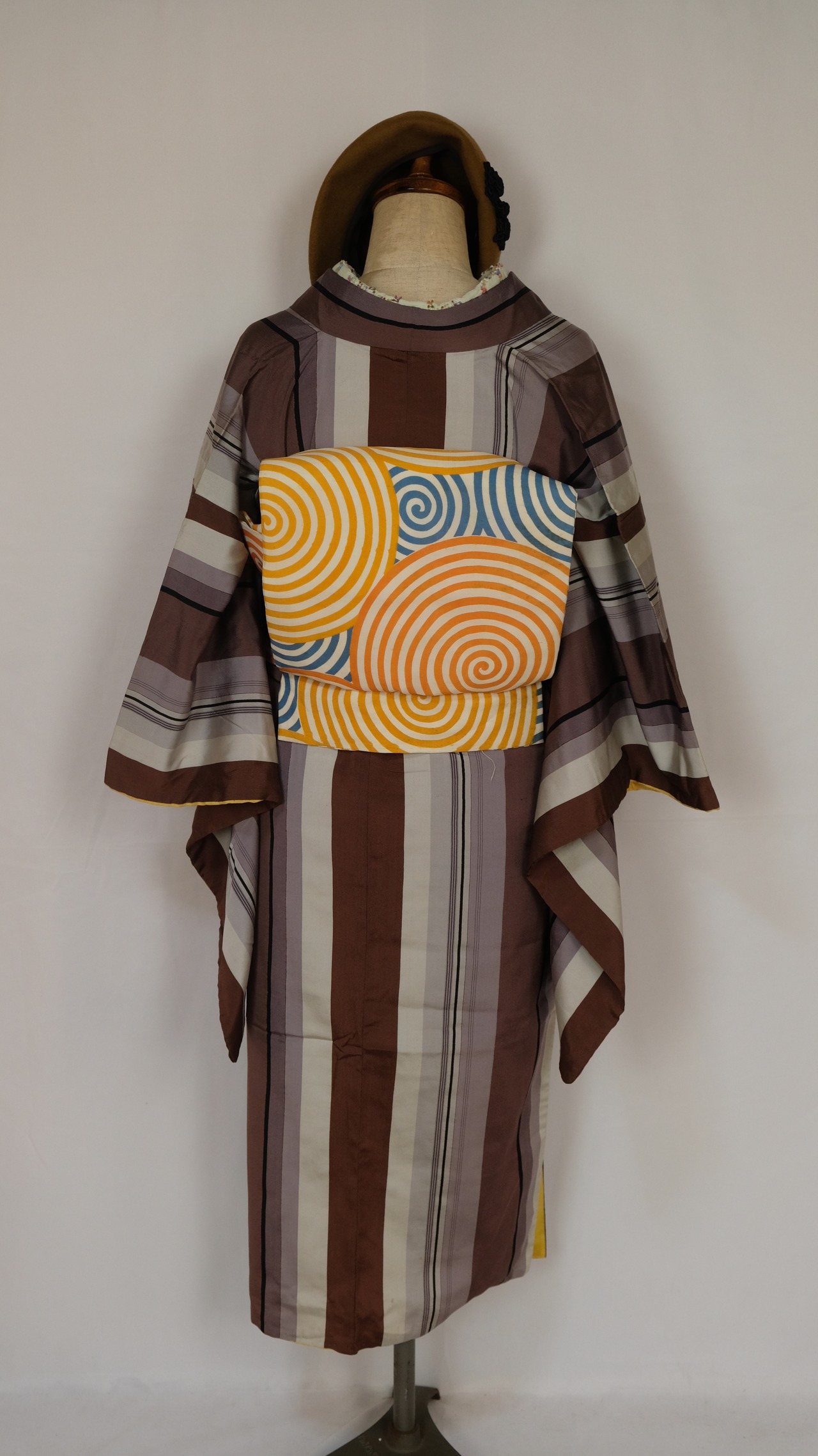 渦巻き柄の帯でレトロ×モダンの個性派NEOキモノスタイルでまとめてみました。参考にしてください。