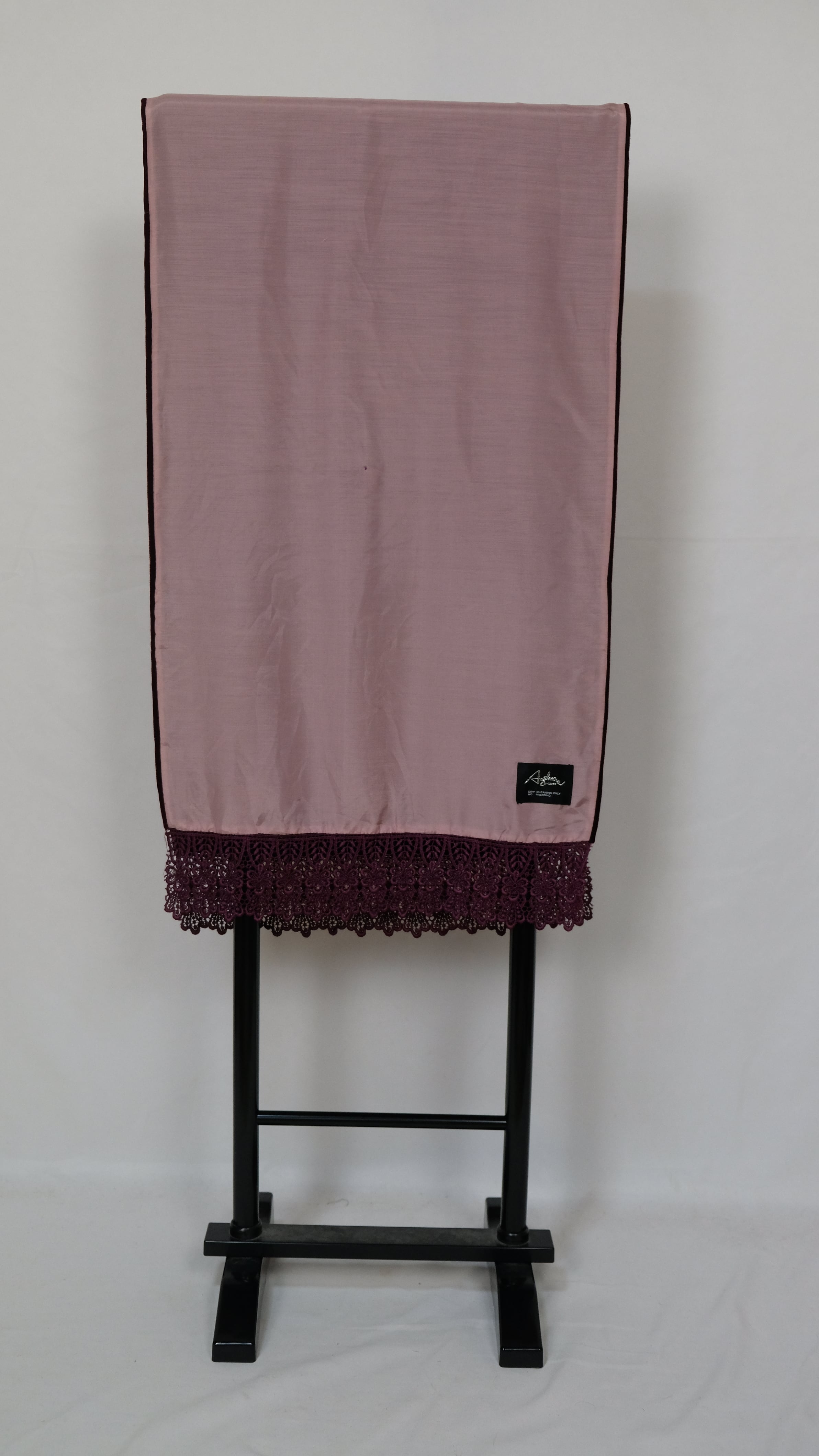 両端のレースがさりげない華やぎを添えつつ、色が落ち着いているのが特徴。