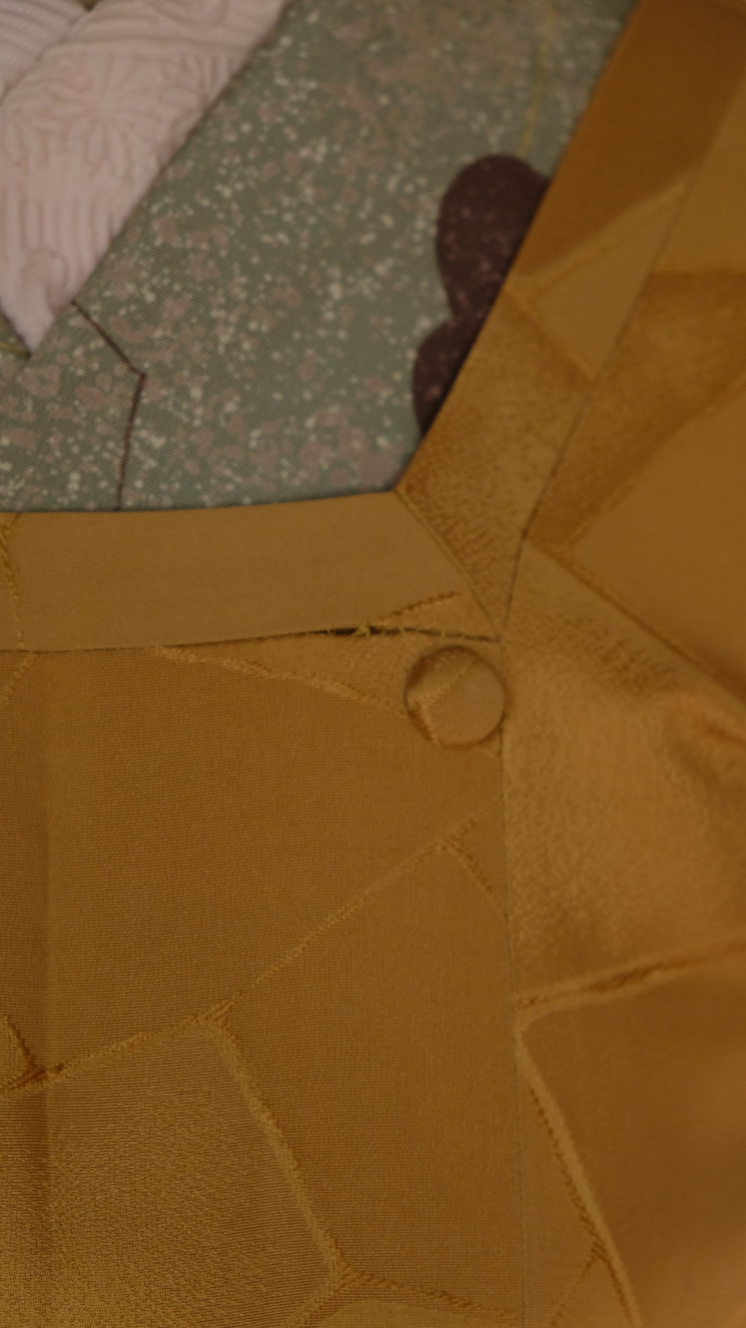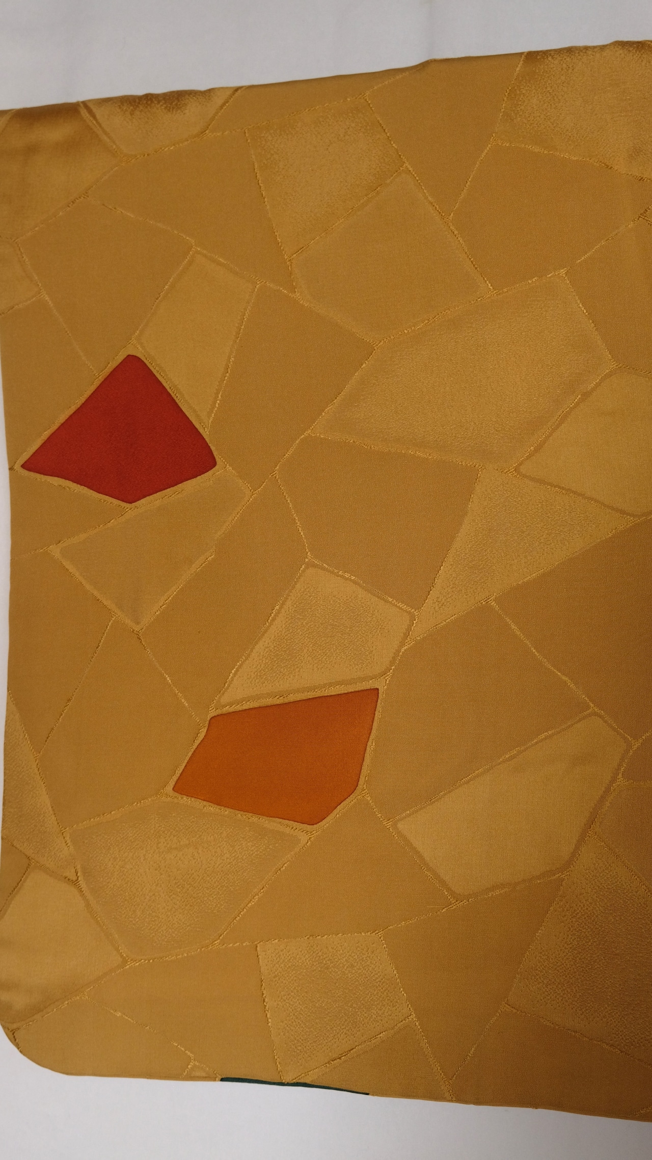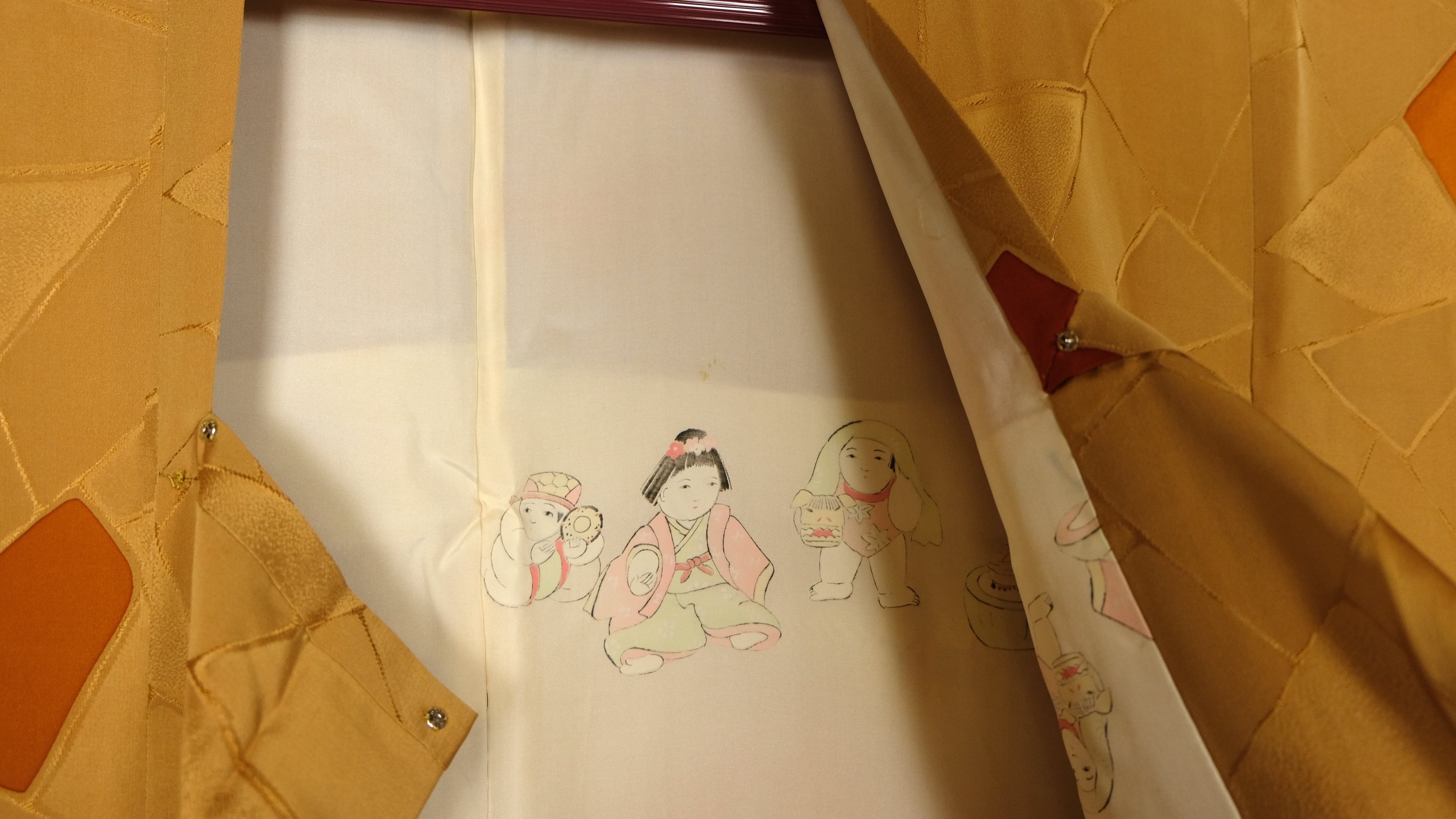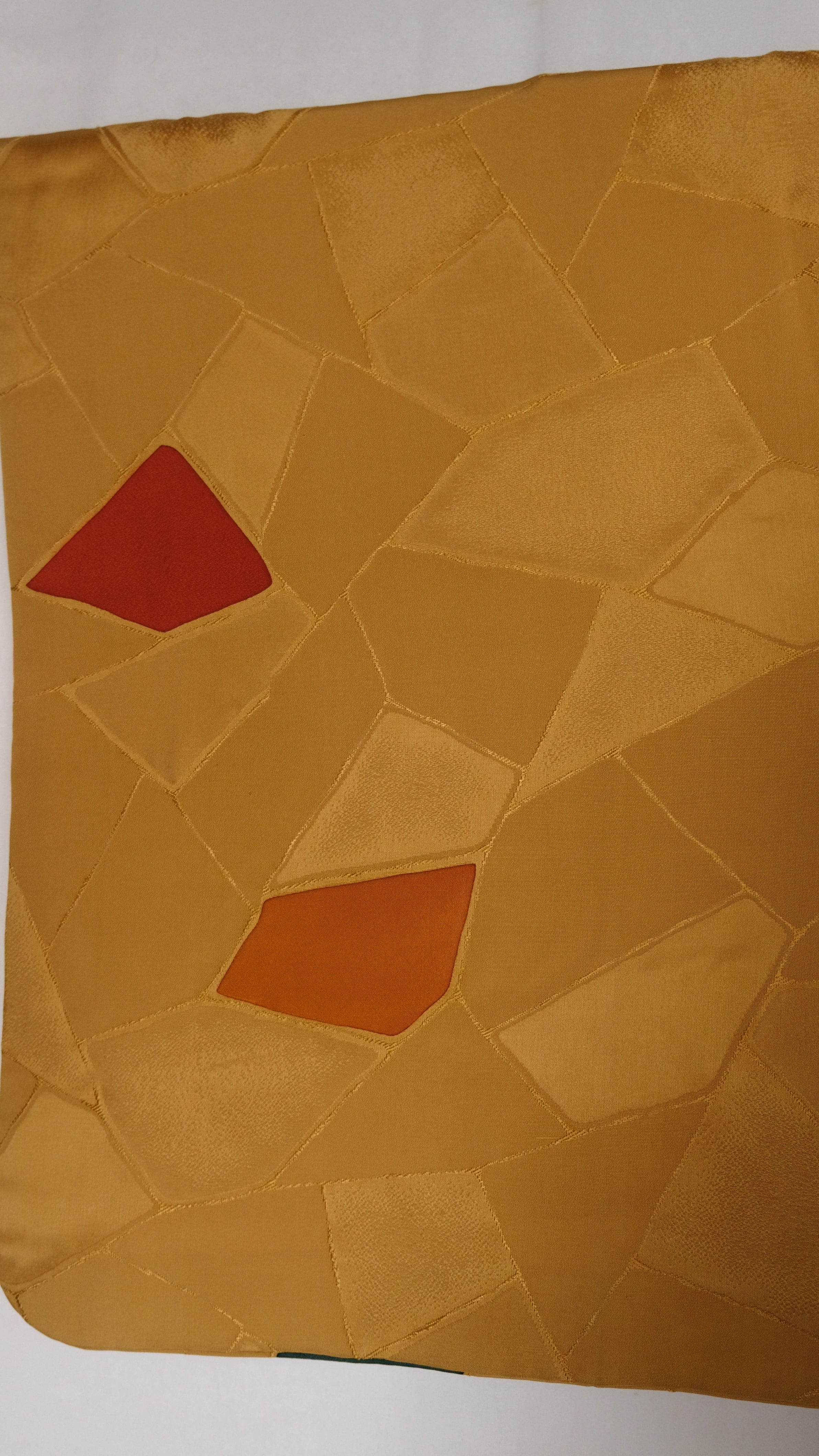 辛子色が地色に綾子でタイルの様なデザインがされた、道行です。